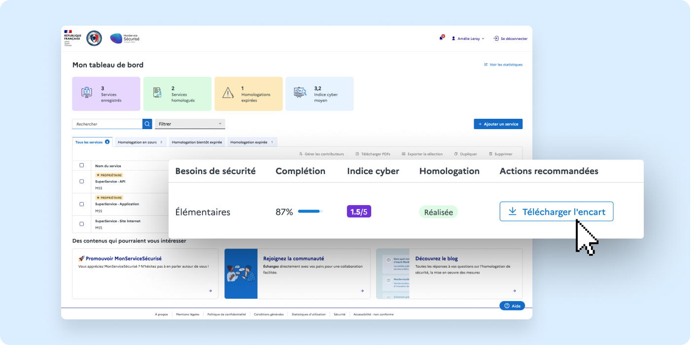 Tous vos services à sécuriser visibles sur votre tableau de bord MonServiceSécurisé !